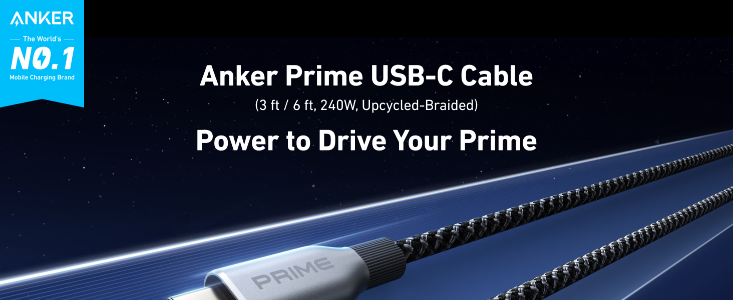Anker Prime USB-C to USB-C Cable (3 ft, 240W, Upcycled-Braided)