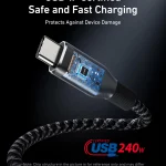 Experience ultra-fast 240W charging with a sustainable cable made from post-consumer recycled nylon, providing quick data transfer and durability in extreme temperatures ranging from -40°F to 176°F.