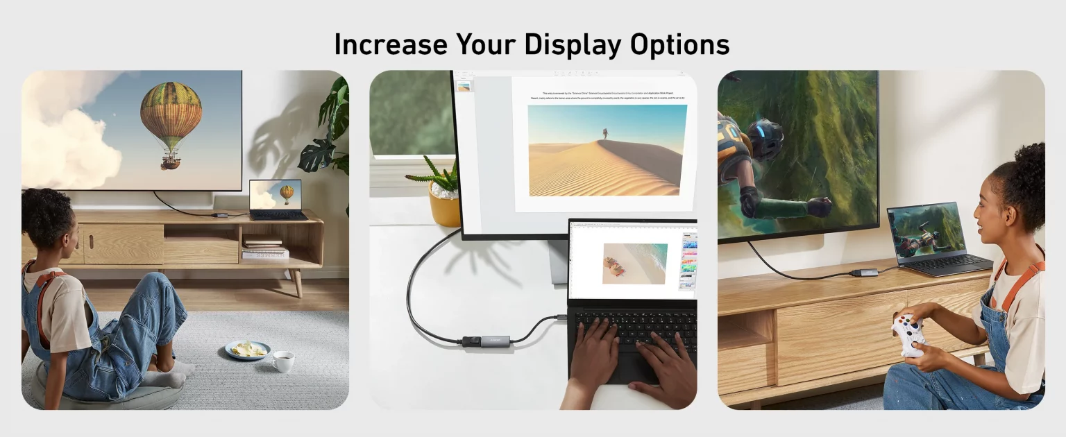 Model Number: A8317 High-Resolution Display This HDMI adapter lets you connect to any TV or display with an HDMI port to stream video at up to 8K@60Hz or 4K@144Hz. Universal Compatibility Whether connecting to a projector at the office, gaming with a multi-monitor setup, or watching a movie at home, this HDMI adapter ensures stable and convenient performance. Dual Display Modes Mirror your laptop's screen to a larger display or extend your desktop to use multiple programs at the same time. No Installation Necessary All you have to do is plug it in.